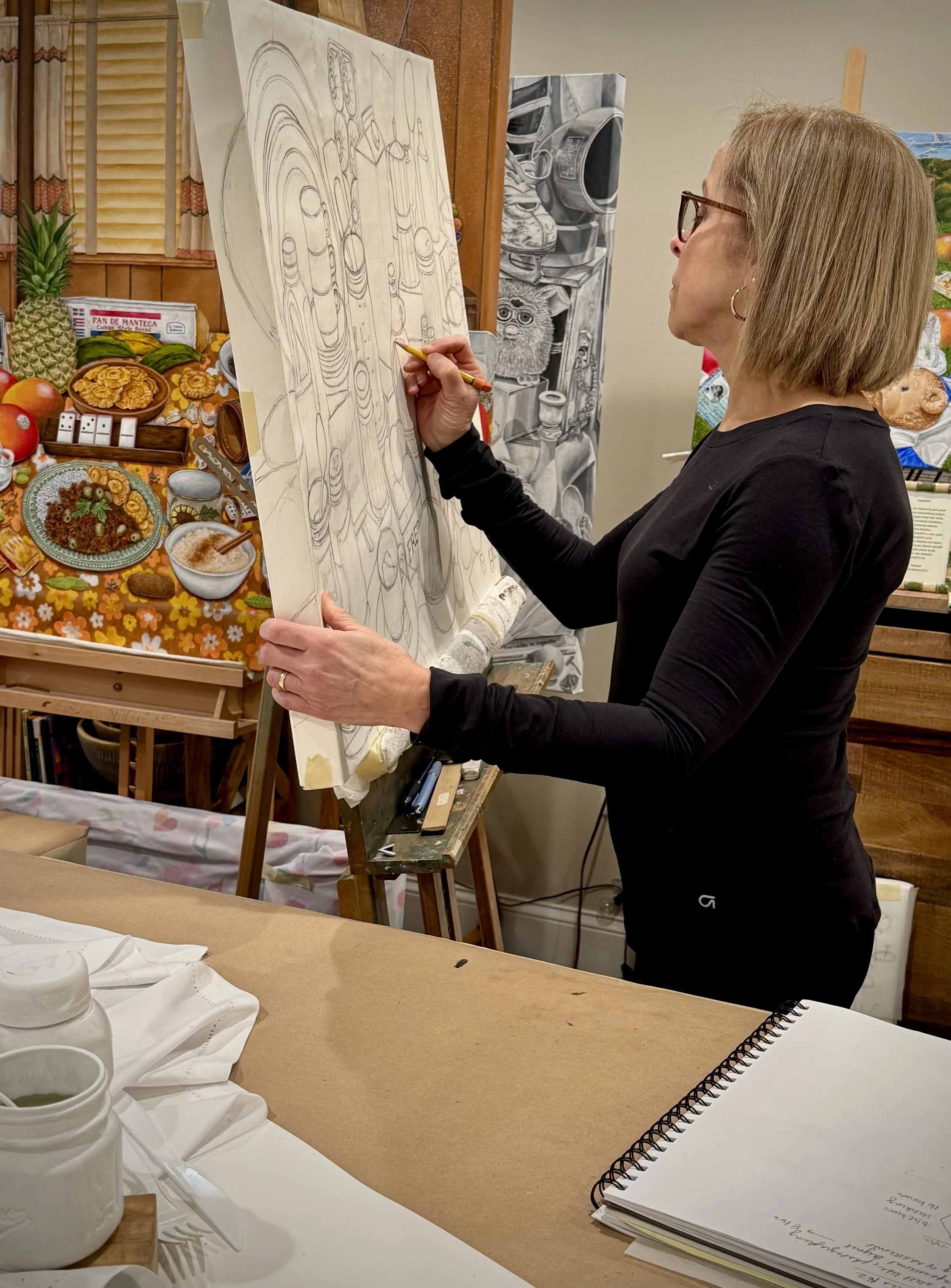I am a retired art educator and museum consultant currently working on my own body of work as an artist. My work has an autobiographical focus as I am inspired by my own personal and cultural identity while incorporating my experiences as an art educator. I attribute my knowledge base and love for my craft to the influences of the many inspiring female mentors that I had the honor of knowing, learning from and working with throughout my professional career. This inspiration, in turn, informs my work conceptually, technically and aesthetically. In addition, I have also been inspired by the work of Audrey Flack, Giorgio Morandi, Louise Nevelsohn, and Frida Kahlo .